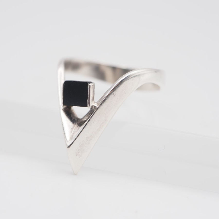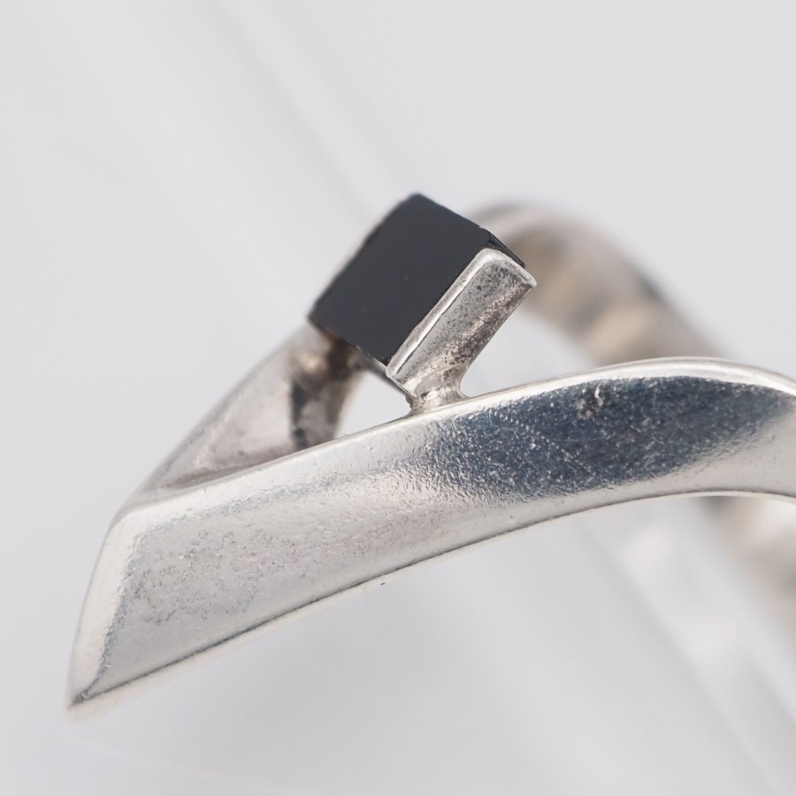 S436 Onyx Silver Stamped Ring Design Silver Ring Size 13
