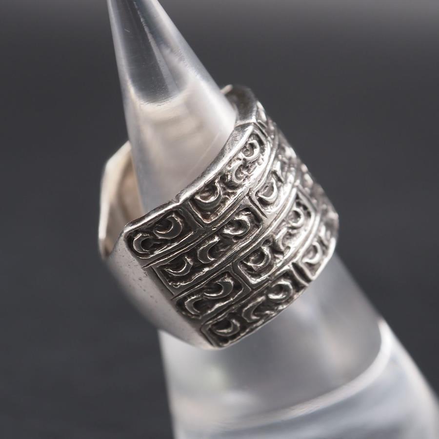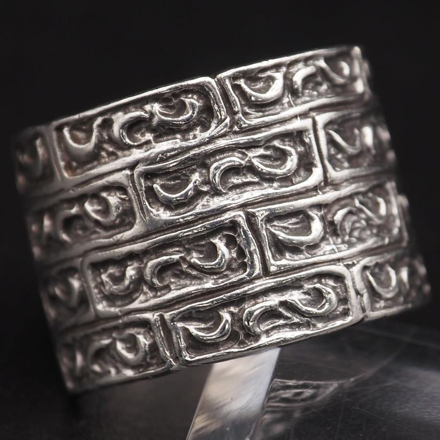 S552 Vintage Ring, Large, Engraved Design, Silver Ring, Size 12