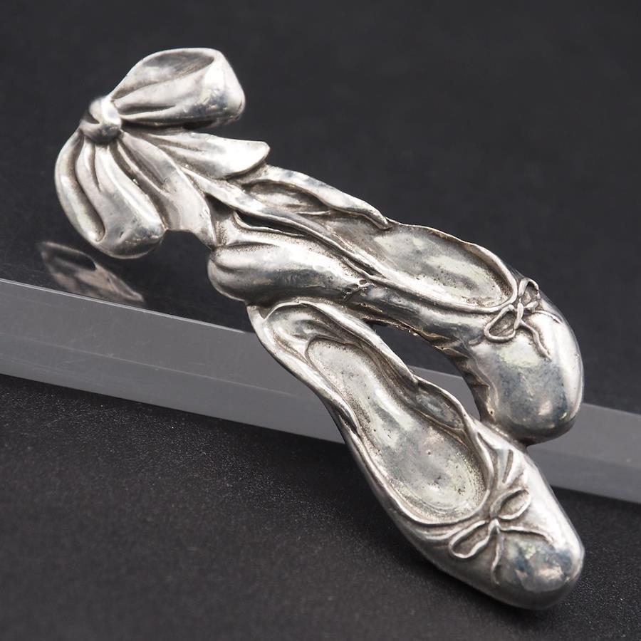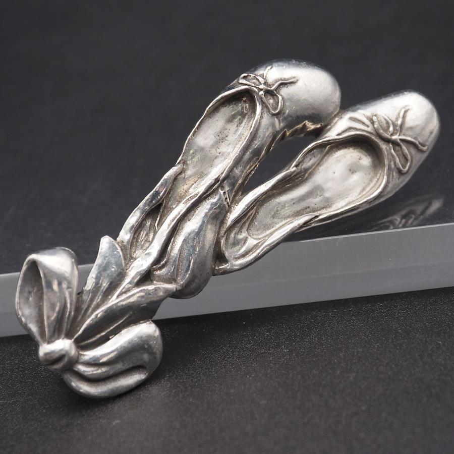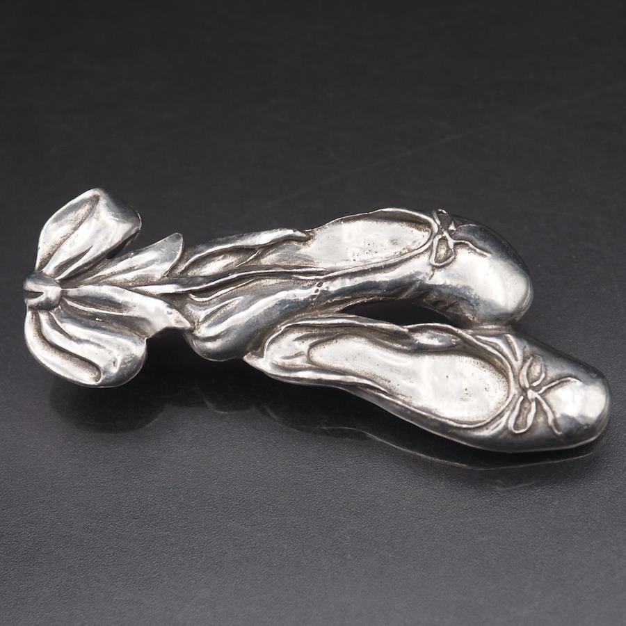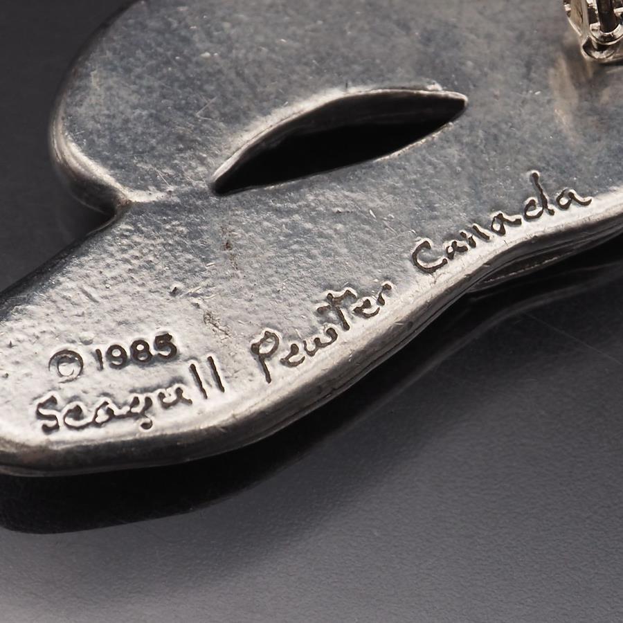 S792 Seagull Pewter Canada Stamped Brooch, Ballet Shoe Ribbon Design, Vintage Pewter