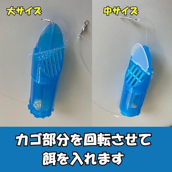 「フタ・羽根付き」簡単ぶっ込みサビキカゴ、タナ取り不要。釣果を向上させることが期待る機能、水中に落下させるとフタがV字型に閉じた状態で、抵抗無く落下し、狙いのタナに着いてから竿をシャクるとフタがパタパタと開き、無駄なくコマセを放出、魚の捕獲率が大幅に向上します。
