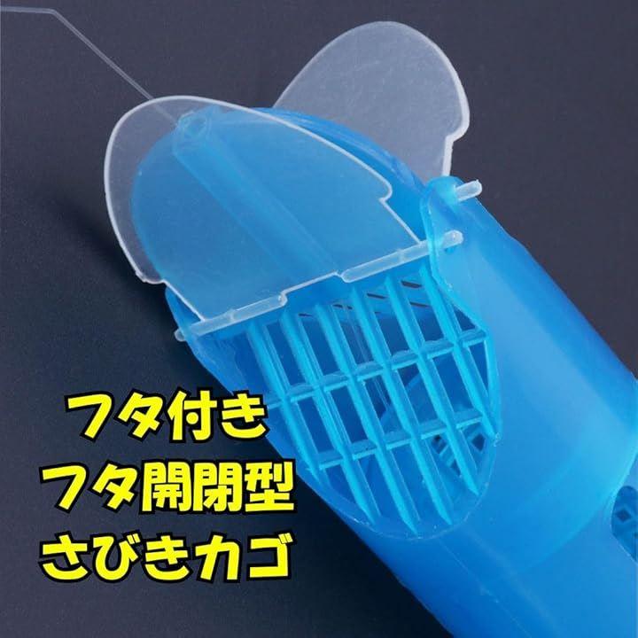 「フタ・羽根付き」簡単ぶっ込みサビキカゴ、タナ取り不要。釣果を向上させることが期待る機能、水中に落下させるとフタがV字型に閉じた状態で、抵抗無く落下し、狙いのタナに着いてから竿をシャクるとフタがパタパタと開き、無駄なくコマセを放出、魚の捕獲率が大幅に向上します。