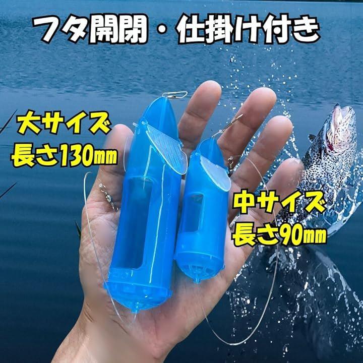 ロケットタイプのぶっこみサビキカゴ、開閉するフタが特徴です。