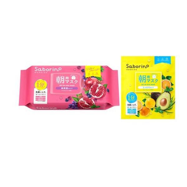 製品の特徴●サボリーノ 目ざまシート 完熟果実の高保湿タイプ N(BCL Saborino Morning All-in-one mask)●これ1枚で朝のお手入れが1分(*1)で完了!洗顔(*2)+スキンケア+肌ひきしめ。●起きたての肌に寝起きの肌にそのまま貼るだけで、洗顔(*2)、スキンケア、保湿下地までできる朝用のオールインワンマスクです。●簡単なのにしっかりお手入れして1日中潤う肌に。●ひきしめながらしっかり潤う!洗顔いらずのオールインワンマスク。●化粧ノリアップ!しっとりうるおい肌へ整える。◇「水密ヴェール処方」潤いが浸透(*3)しながら、肌表面はしっとりキープ。◇「エイジングケア(*4)」22歳の肌をイメージした保湿成分(*5)配合。日中のストレスなどで減少しがちな水分量と皮脂量に着目し、最適なバランスへと導きます。◇「角質ケア」毛穴洗浄効果がパワーアップ!寝起き肌の毛穴と角質をケアします。リンゴ酸+マンデル酸(以上、全て角質ケア)+グリシルグリシン(ひきしめ)●2種のビタミンC(*6)配合。●ミックスベリーの香り。●フェイスマスク/シートマスク/スキンケア
