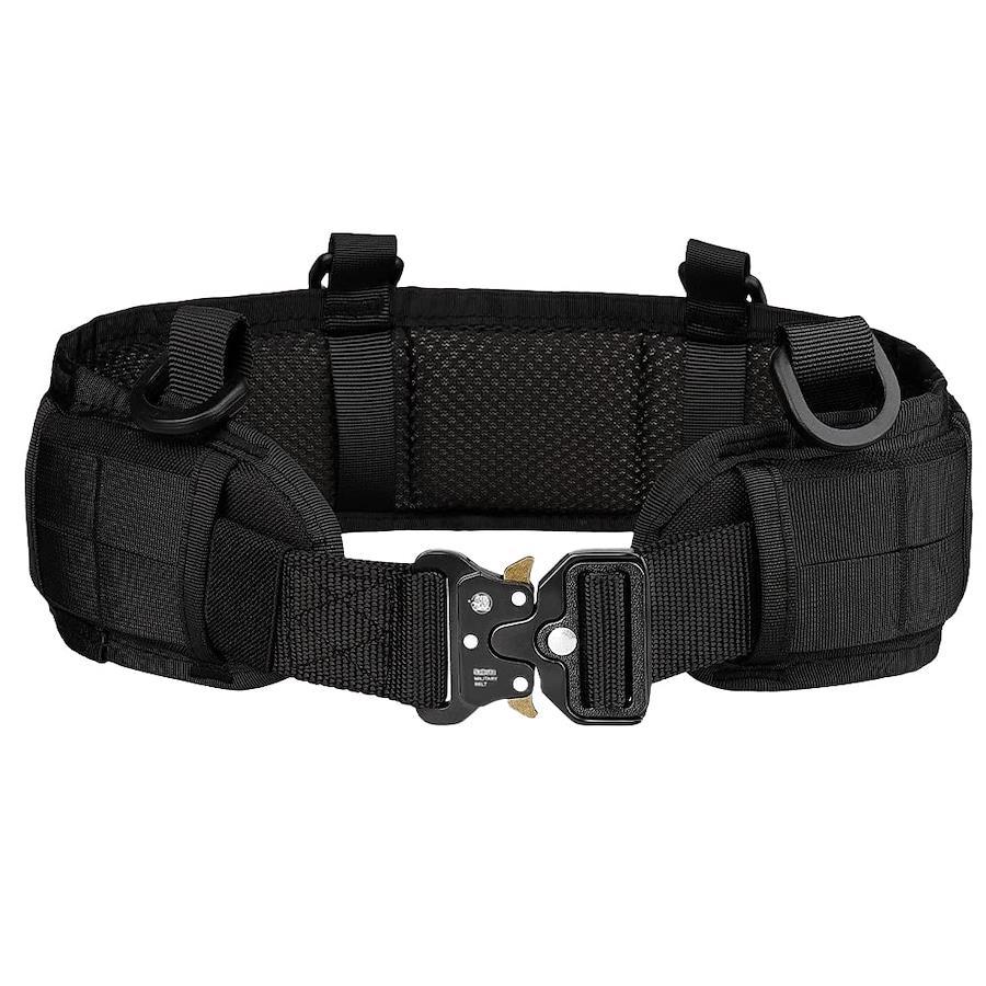 ?【 コブラバックルベルト 】 ワンタッチ式のコブラバックルを採用。堅固な3点式留め具で強度をアップされます。ミリタリー基準で設計されているので、サバゲーはもちろん、作業現場や登山など過酷な状況下でも3箇所の金属ジョイントパーツでがっちりとホールドしてくれます。また、ベルトはパッドから取り外し可能です。