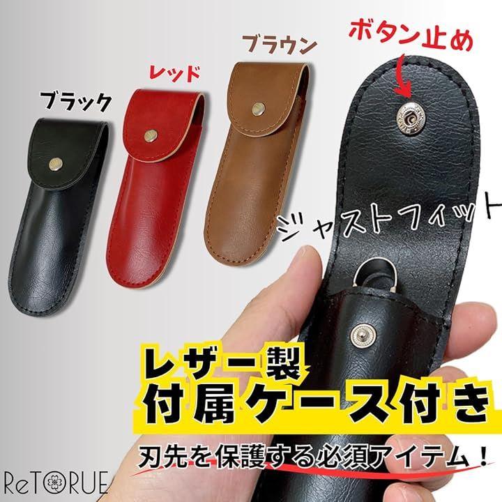 「専用レザーケース付」ハサミがピッタリと収まり持ち運びしやすく、長期使用できるよう刃先を安全に守ります。