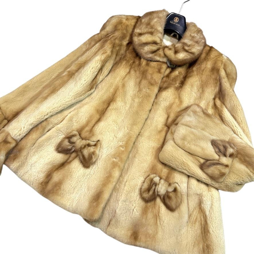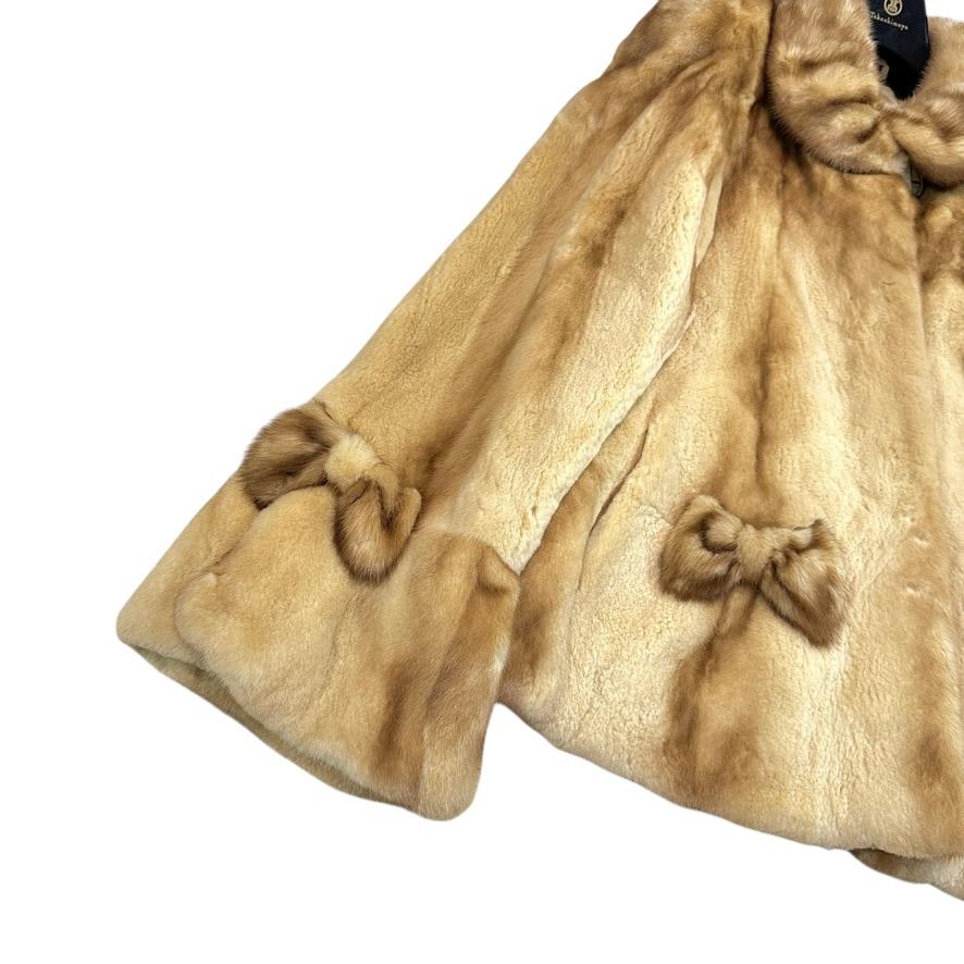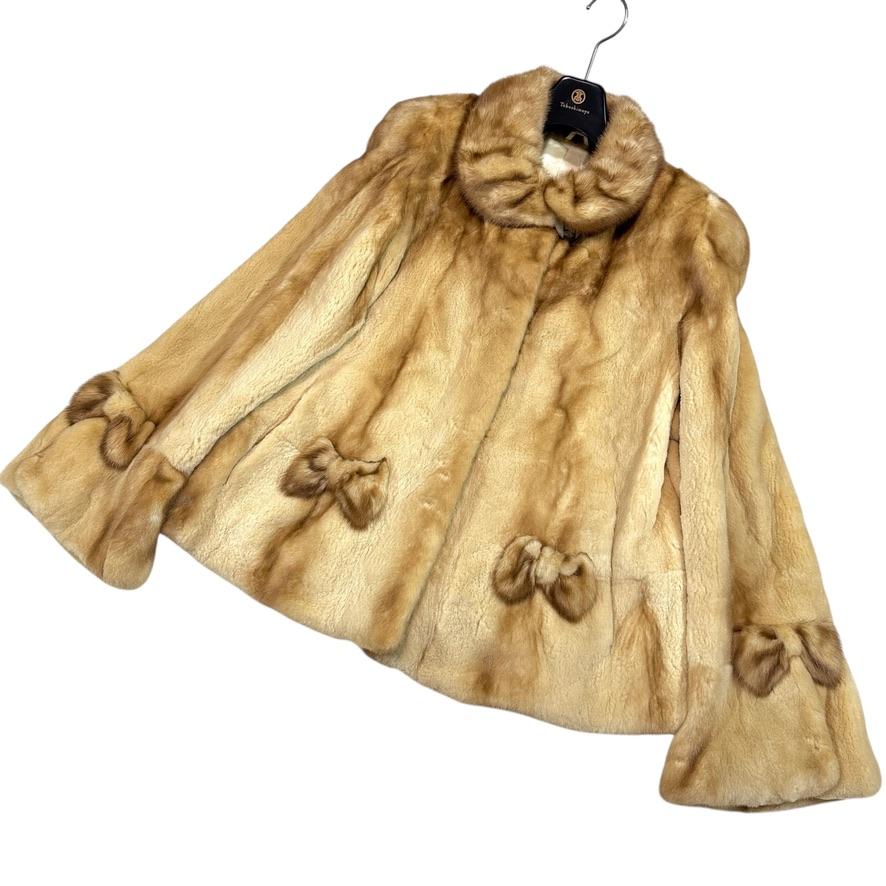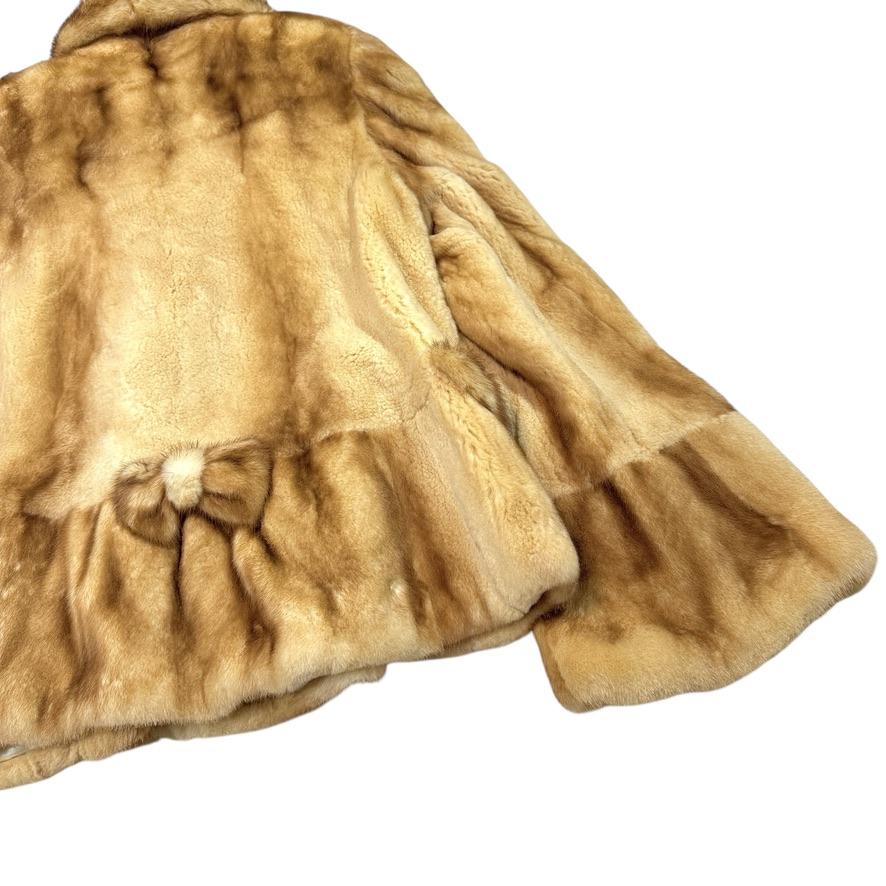 SAGA MINK パステルミンク シェアード加工切り替え リボン付き ショートコート
