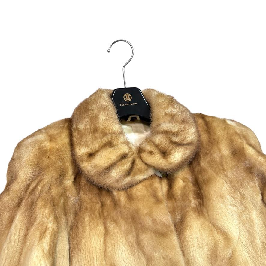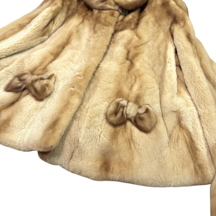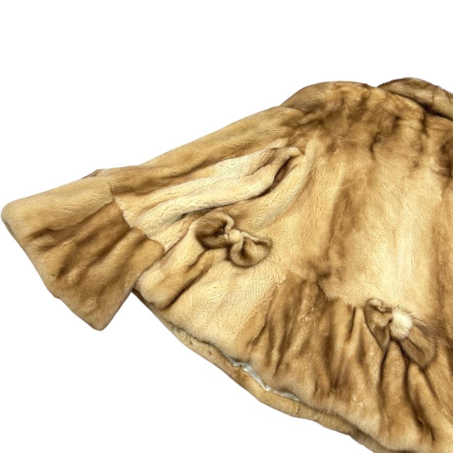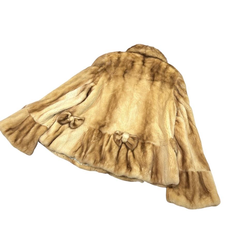 SAGA MINK パステルミンク シェアード加工切り替え リボン付き ショートコート