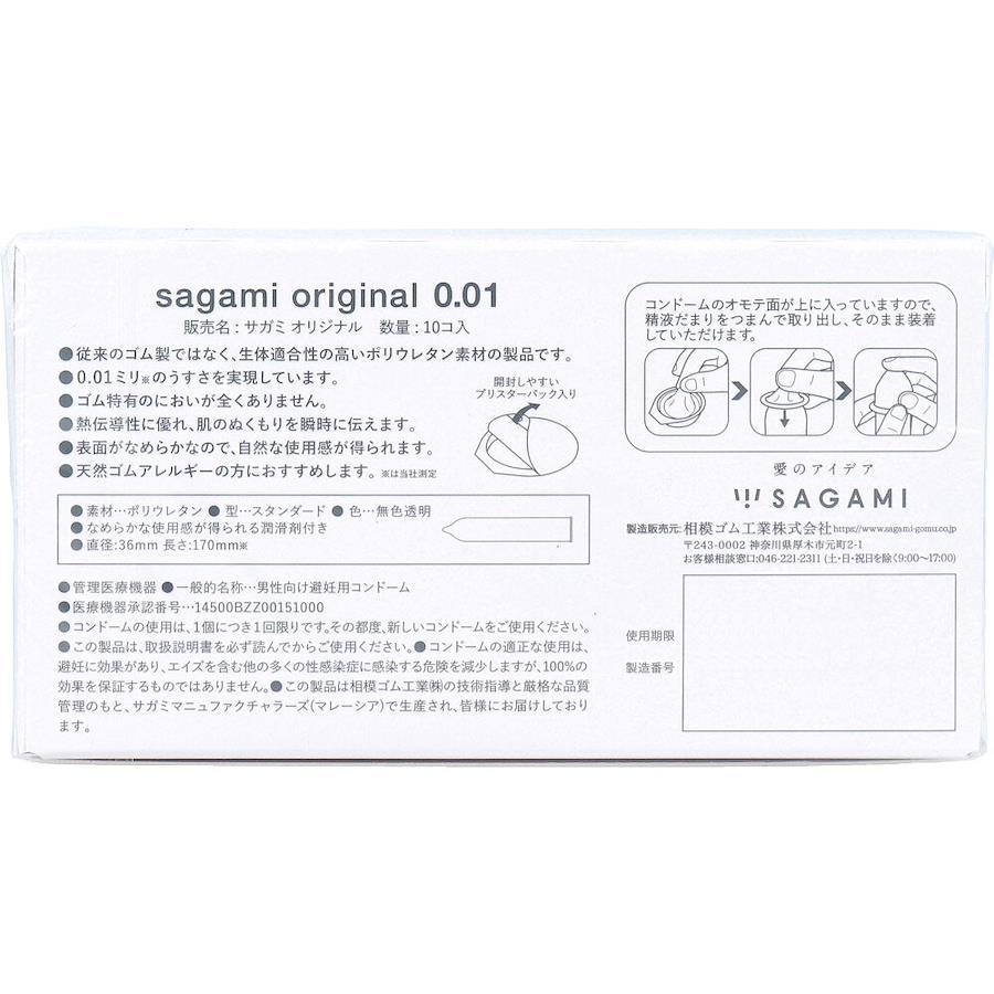 ゴムじゃないコンドーム。サガミオリジナル。※相模ゴム工業社標準的なうすさ:18ミクロン。●従来のゴム製ではなく、生体適合性の高いポリウレタン素材の製品です。●0.01ミリ(※相模ゴム工業社測定)のうすさを実現しています。●ゴム特有のにおいが全くありません。●熱伝導性に優れ、肌のぬくもりを瞬時に伝えます。●表面がなめらかなので、自然な使用感が得られます。●なめらかな使用感が得られる潤滑剤付き。●天然ゴムアレルギーの方におすすめします。●開封しやすいブリスターパック入り。