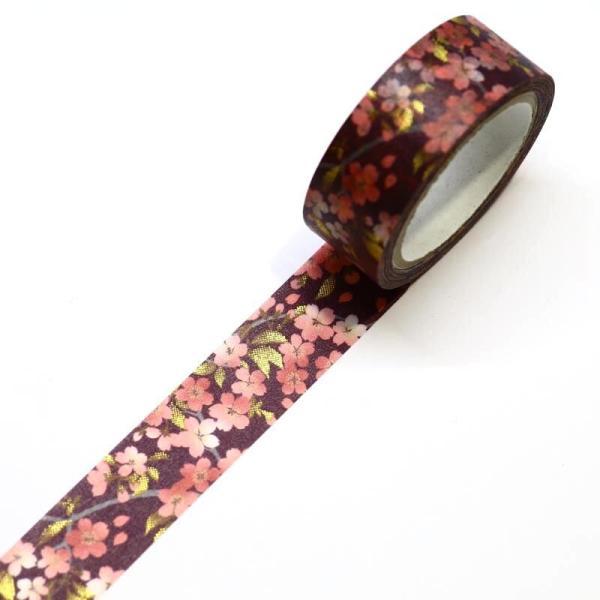 SAIEN Kimono Beauty HANA Masking Tape Sakura 15mm (GR-1013) 7m Roll Yuzen Pattern Gold Foil Gradient Washi Stationery