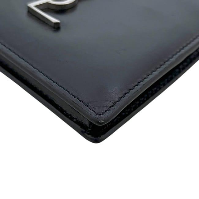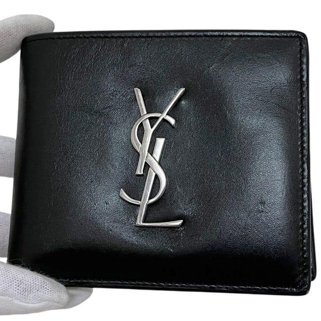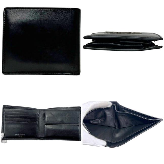 ☆---- 商品について ----☆サンローラン 二つ折り 財布 ec-24865 ブラック GBL463249 0918 美品 YSL レザー 中古 SAINT LAURENT PARIS ロゴ金具 黒 折り財布 革財布 箱付き シルバー金具 シンプル 革 メンズ レディース 男女兼用 定番 人気 ブランド 本物 鑑定済み