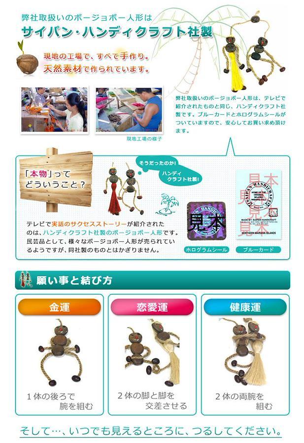 ボージョボー人形は、サイパンの先住民族・チャモロ族が古くから親しんできた、愛と富を成就させるといわれている願掛け人形です。