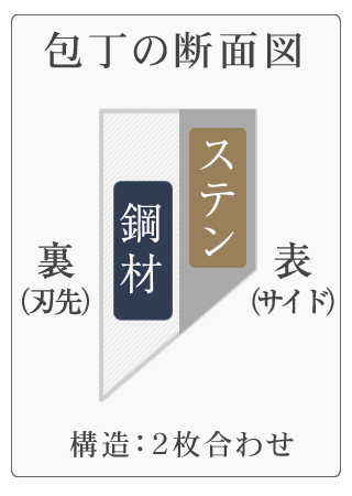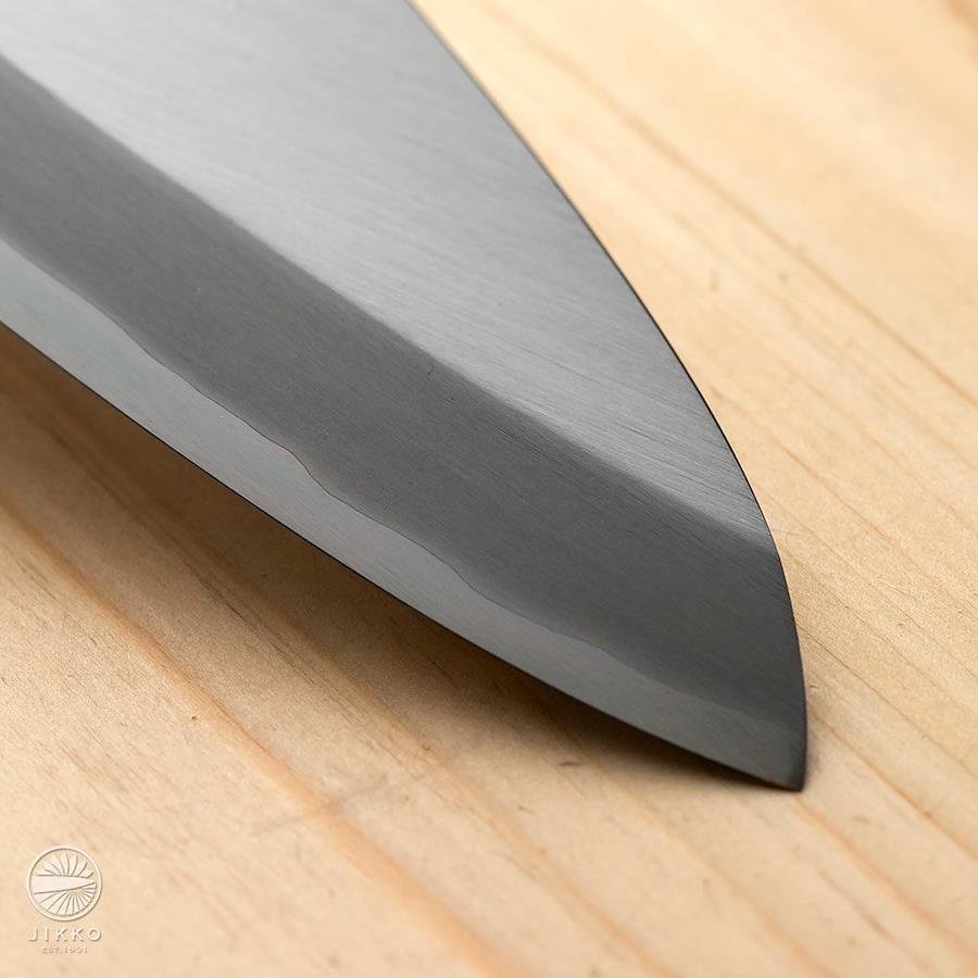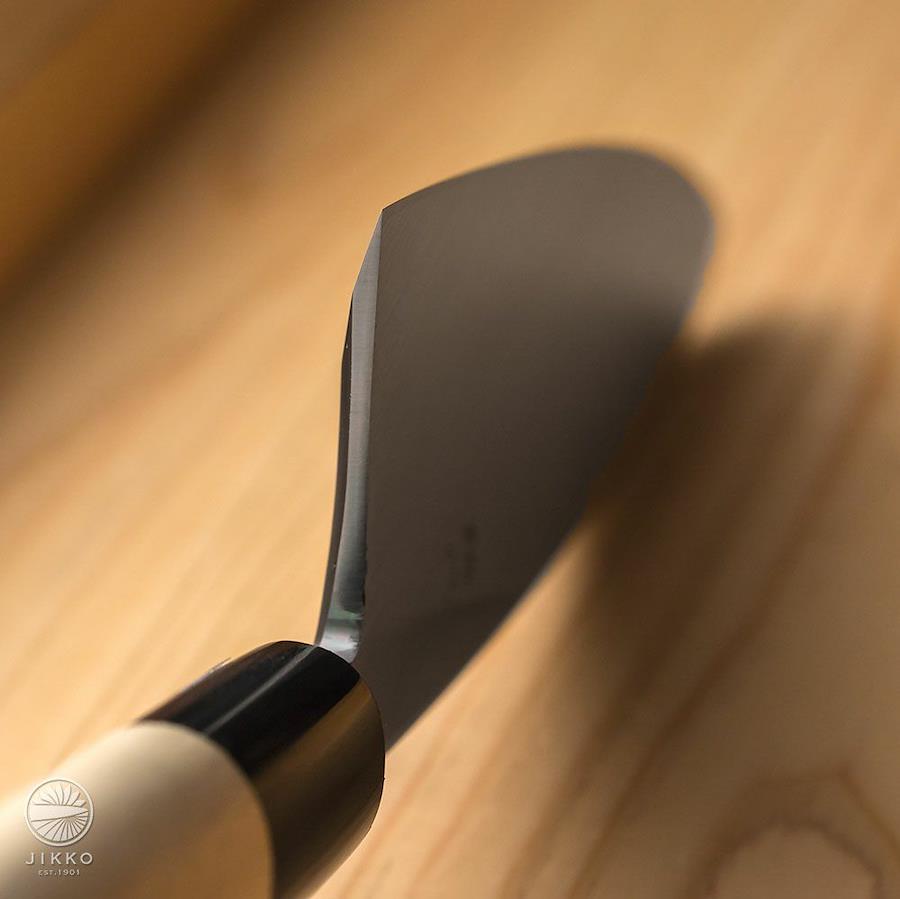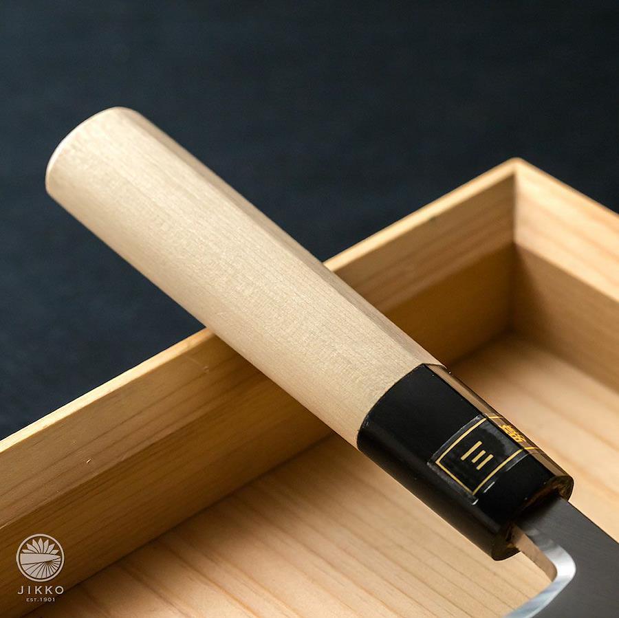 和包丁なのに錆びにくいメンテナンスの容易な銀三を使用。銀三は炭素系(青鋼・白鋼)の包丁と同等の切れ味を持った錆びに強いステンレス鋼です。※手研ぎ仕上げをしているので直ぐに使用できます。