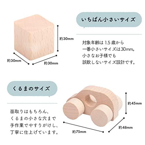 積んだり、並べたり想像力を育みながらたくさん遊ぶことで、手先の機能も高めます。 郡上八幡で作った無塗装積み木!遊びが広がるくるま付きです。 誕生日やクリスマスなど、プレゼントやギフトに 【材質】ブナ【単品サイズ】ピースサイズ1例:立方体/約3×3×3cm、くるま/約4.8×7.5×高4.5cm【単品重量】1600g 【注意事項】48ピース+くるま2台、対象年齢/18ヶ月~、ST取得あり、最小ピースサイズ:円柱/約径3×高3cm【生産国】日本