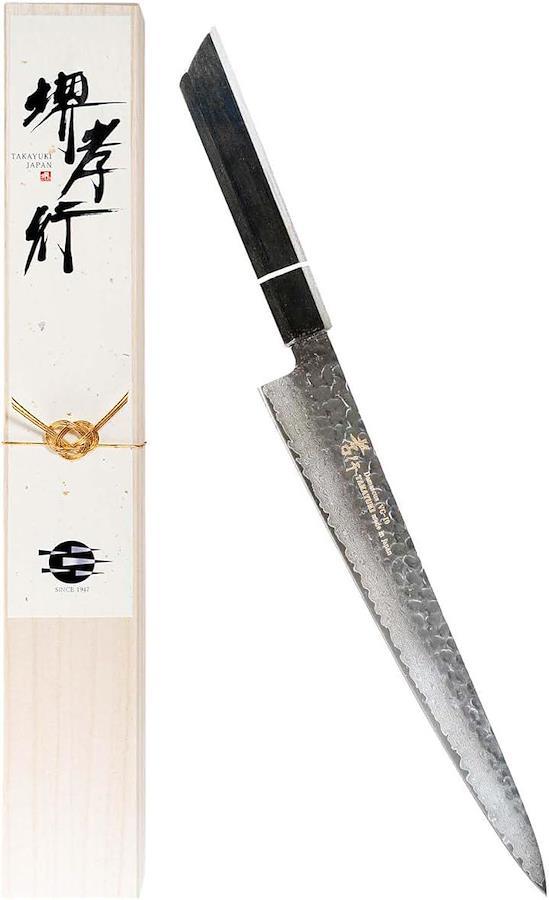 Sakai Takayuki, a knife brand used by professional chefs, Senkuro Damascus Sujihiki 240mm V Gold No. 10 vg10 33-layer hammered finish Oak lacquer handle Aoki Cutlery Manufacturing Co., Ltd. Model number s24004