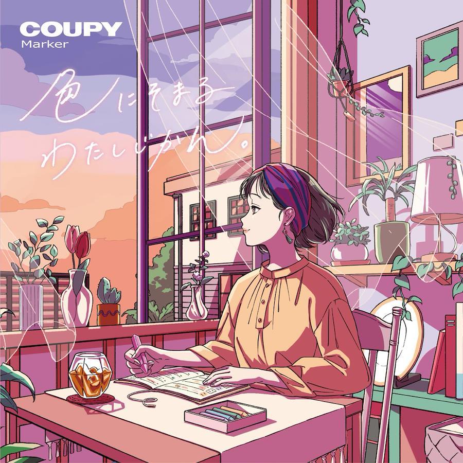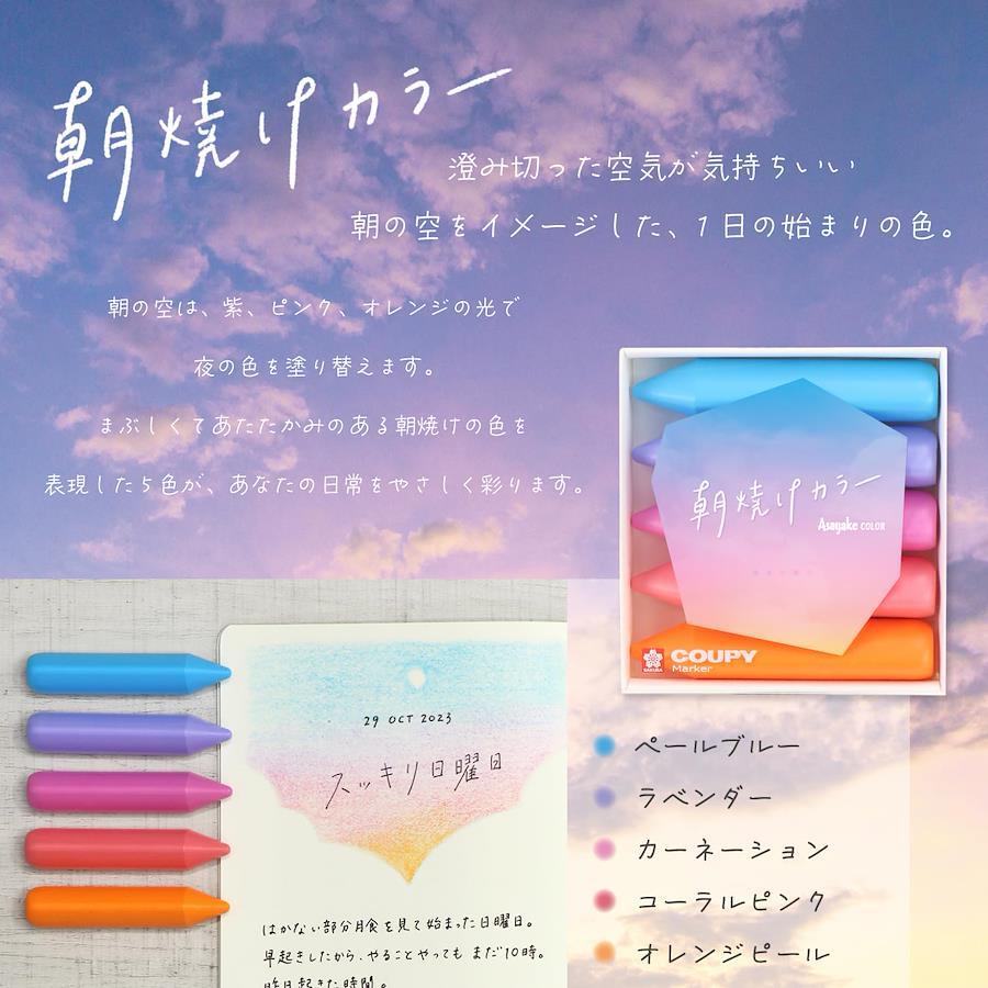 変わりゆく空の美しいグラデーションを、全部が芯のラインマーカー「クーピーマーカー」で表現した、クーピー50周年記念限定商品。