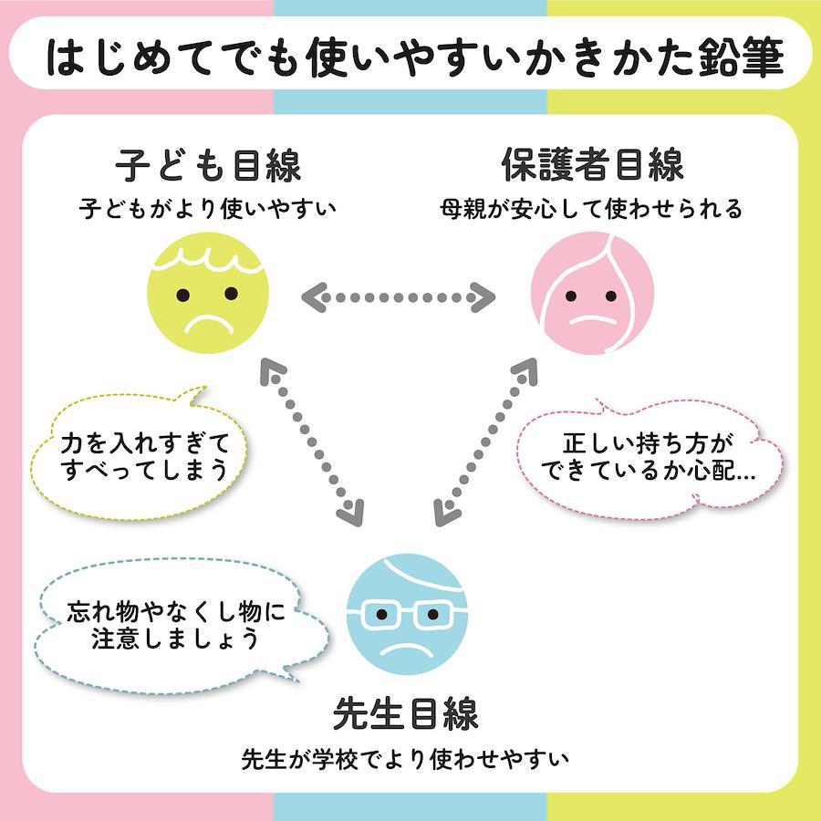 小学生の使いやすさを考慮し、学習のプロセスや体のサイズに合わせて開発された「小学生文具」シリーズ。新入学や新学期におすすめのかきかた鉛筆12本入り。安心の日本製。三角軸はえんぴつの正しい持ち方が自然と身につく。六角軸は机から転がりにくい。高い筆圧や汗でもしっかり掴める滑り止め付き。名前欄が広くて書きやすい。白色なのでおなまえがよく見える。