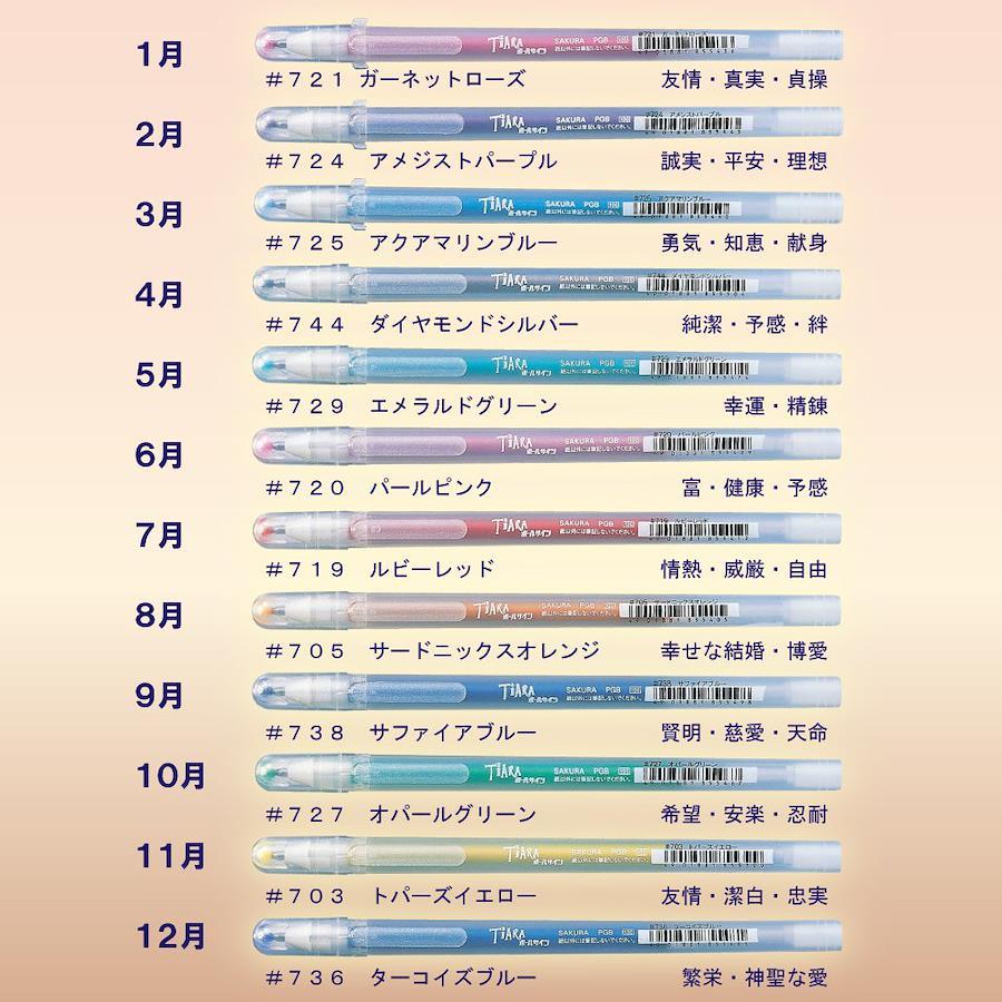 12種の誕生石をイメージして創られた水性ゲルボールペン。ラメフレークをインキにミックスしているので、宝石のようなキラキラ感が表現できます。レターやカード、イラスト描きにいろいろ使える12色セット。