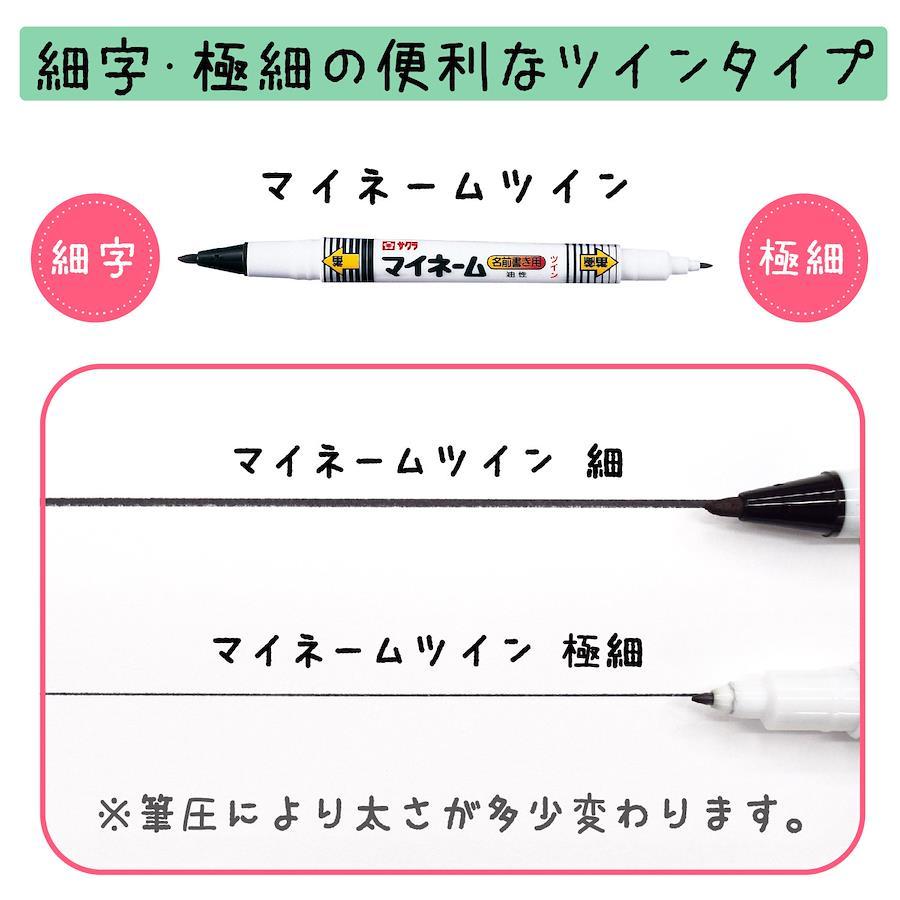 【特長1】名前書きの定番/にじみにくい・洗たくしても落ちにくい/ツイン式(細字・極細)