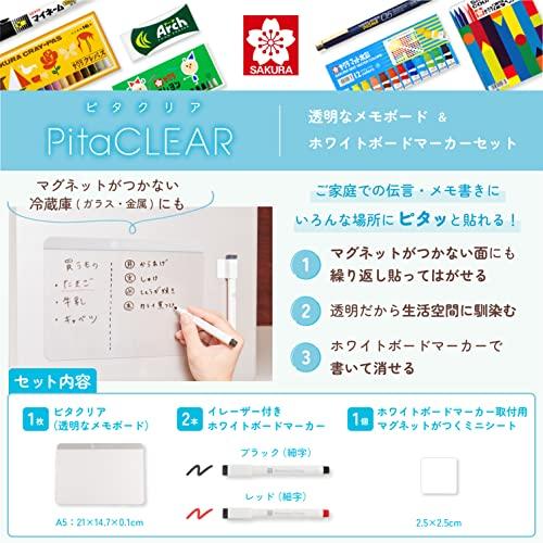 Sakura Crepas Transparent Whiteboard Sheet Pita Clear A5 Adhesive Whiteboard Marker Black Red Set of 2 WDC-A5S