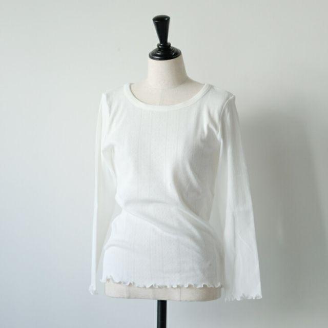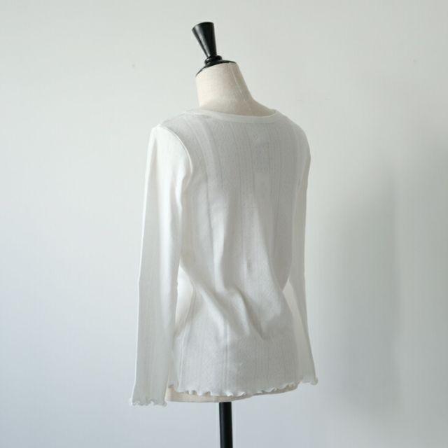 裾と袖口はアウトにしてもかわいいメロー始末でレイヤードスタイルにもオススメです。