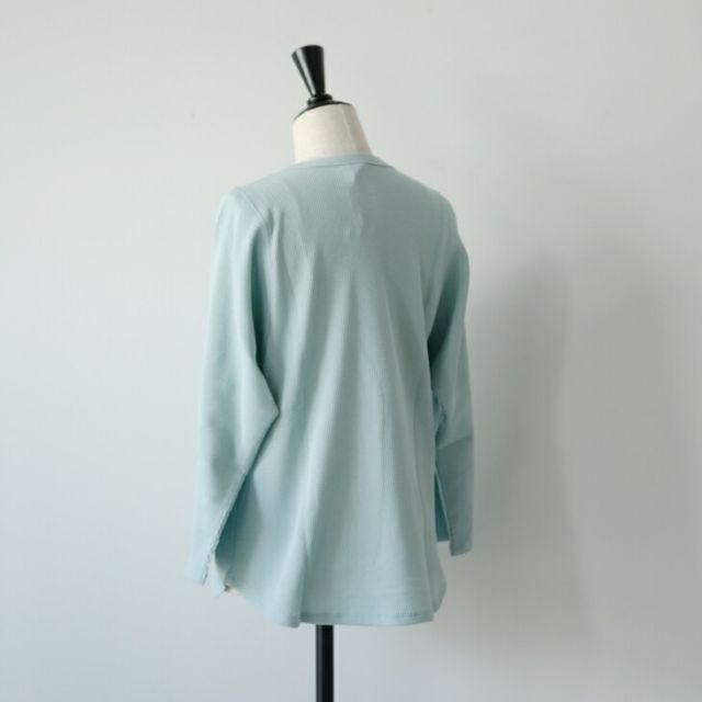 コンパクトな肩巾と程よい着丈感で、カジュアル見えになりがちなワッフル素材もすっきり着こなしていただけます。