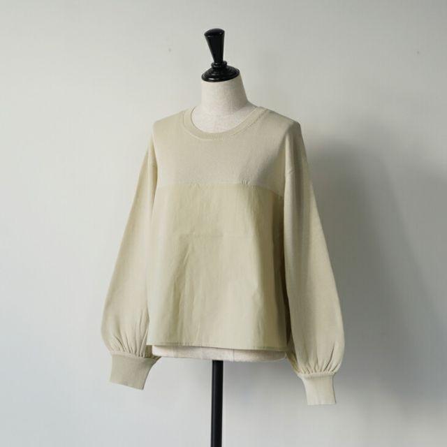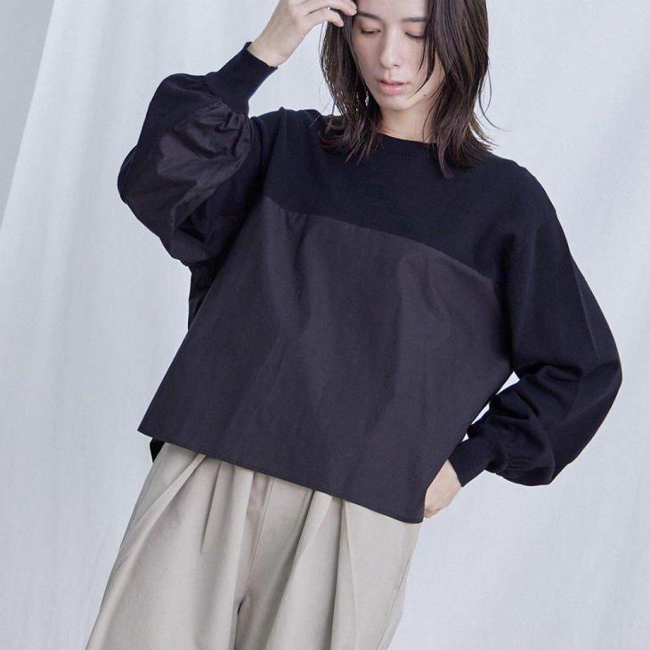 ニットと綿ブロードを組み合わせたプルオーバー。