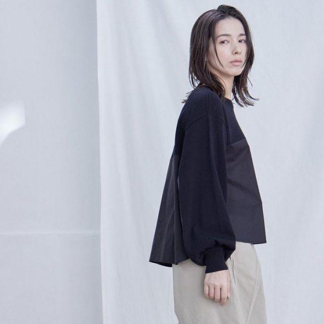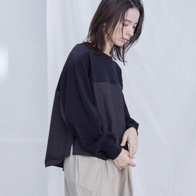 トレーナー感覚で着やすく布帛と組み合わせている事で外出着としてもおすすめのアイテムです。