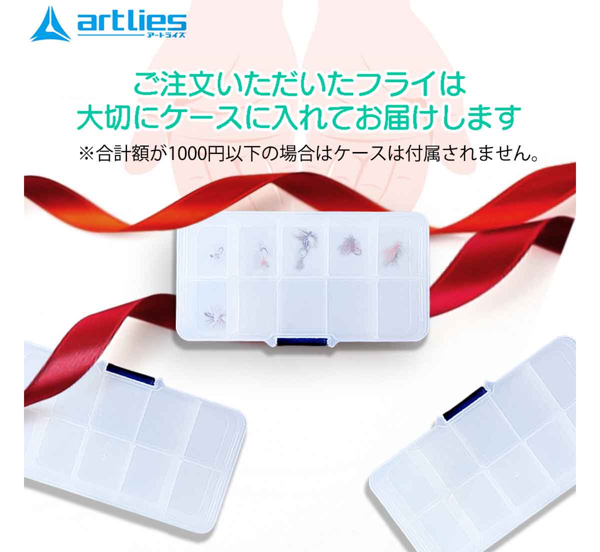 【重要・確認】フライは天然マテリアルを使用している為、画像とカラーが一致しない事があります。フックはフライパターンによって同一サイズでも大きさが違います。(テレストリアルやバス系はフックが特殊で大きいです)ご了承の上、ご購入ください。