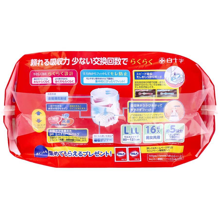 〇商品説明尿とりパッドを使用しなくても長時間安心!パッドをトイレに落とす心配がありません。●やさしく包むらくらく設計。・締め付けないからおなからくらく。・よく伸びるからはくのもらくらく。●全方向からフィットしてモレ防止。モレやすい背中まわりと下腹部に集中的にぴったりフィット!●お肌ケアを考えたphコントロールパルプ。弱酸性のphコントロールパルプを採用することで抗菌・消臭効果を発揮します。※抗菌:JHPIAが定める抗菌自主基準に基づく。※消臭:アンモニアに対して。●気になる臭いも安心(※アンモニアに対して)吸収ポリマー。●お肌快適、全面通気素材。●一目でわかる排尿お知らせサイン。排尿があるとラインが消えます。●スピード吸収。モレをしっかりガード。尿を吸収体の内部で拡散・素早く吸収するのでいろいろな体勢でもモレを防ぎ安心です。●吸収体がうかびあがってモラさずフィット。2つの吸収体とフィットアップギャザーの働きで、尿道口と吸収体が常に密着してモレを防ぎます。●男女共用。●こんな方に。・交換回数を減らしたい。・パッドなしでも安心したい。