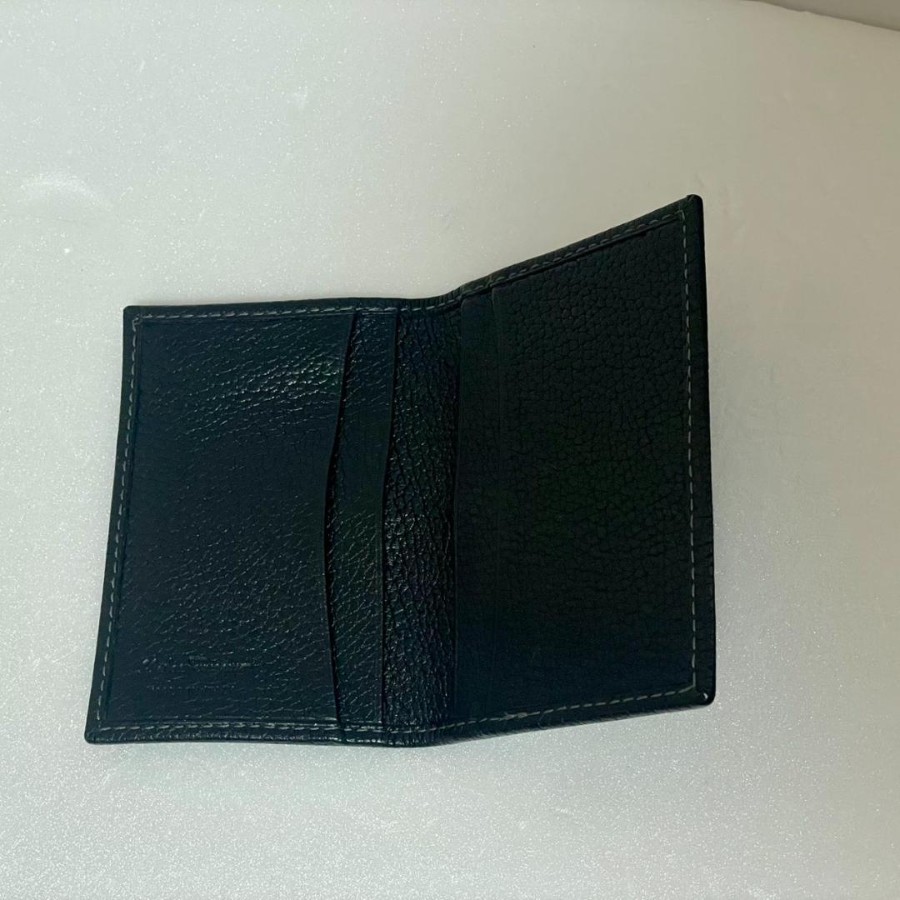 内側: カードポケット部分に、カードの出し入れに伴う薄い押し跡や擦れがあります。