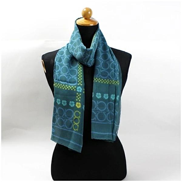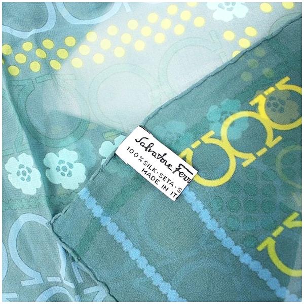 商品名サルバトーレフェラガモ シルク ストール ガンチーニ グリーン×イエロー 中古 Aランク Salvatore Ferragamo