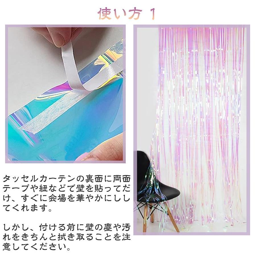 パッケージ内容:2個セット。サイズ:幅1m、高さ2m。 ※PCモニターやご覧の環境によって画像の色が実物と異なって見える場合がございます。予めご了承くださいませ。優れた品質:このキラキラカーテンは、滑らかな表面と独特の反射性のある外観が特徴です。彼らは空間にロマンチックで贅沢な雰囲気を与え、視覚的な魅力を増します。使いやすい:このフリンジカーテンは簡単に取り付けることができます。壁に強力な両面テープを貼るだけで、すぐに素敵な装飾になります。しかし、付ける前に壁の塵や汚れをきちんと拭き取ることを注意してください。広範囲な用途:このタッセルカーテンは、誕生日パーティー、結婚式、展示会、教室の装飾など、さまざまなイベントに適しています。また、日常生活や 特別な行事の飾り付けと撮影背景としても使用できます。【免責事項】メーカーによる商品リニューアルに伴いパッケージ(内容量も含む)変更が行われた場合、新パッケージでお届け致します事ご了承願います。