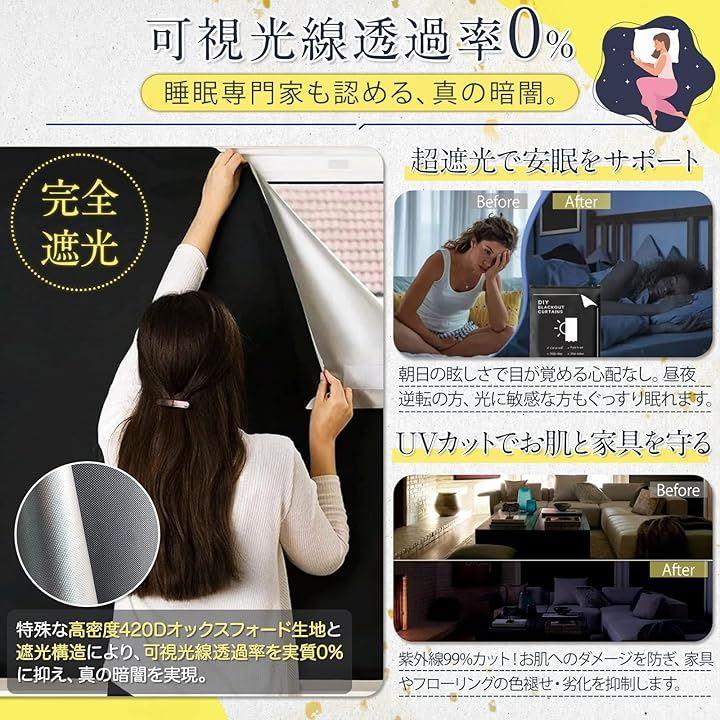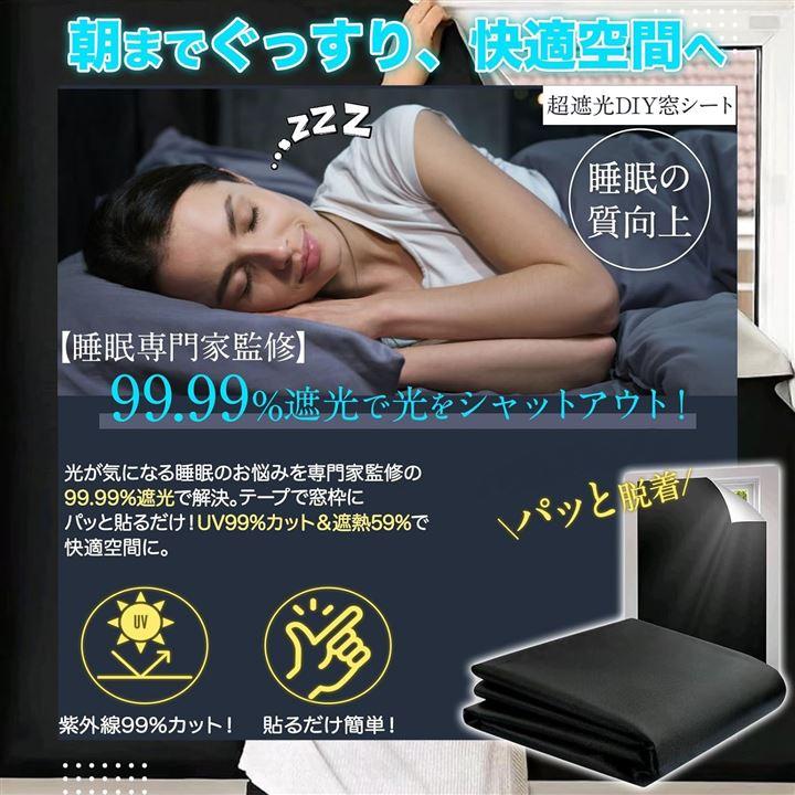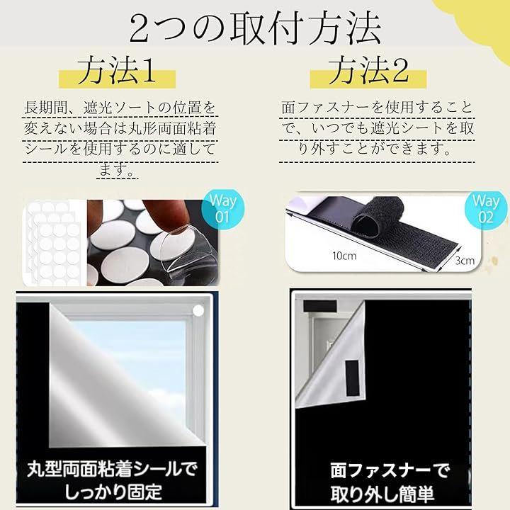 「 貼るだけ簡単。強力遮光で快適空間を」 遮光シートは、窓ガラスや窓枠に直接貼るだけで、外からの光をしっかりと遮断します。