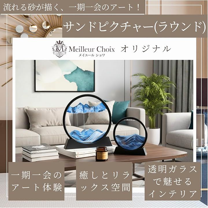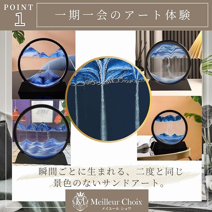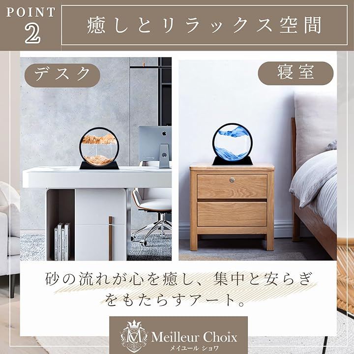 「癒しとリラックス空間」 ゆっくりと落ちていく砂と刻々と変わる景色が、眺めるだけで心を落ち着かせ、癒しの時間を演出。