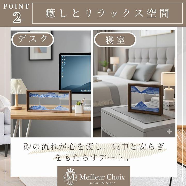 「癒しとリラックス空間」 ゆっくりと落ちていく砂と刻々と変わる景色が、眺めるだけで心を落ち着かせ、癒しの時間を演出。