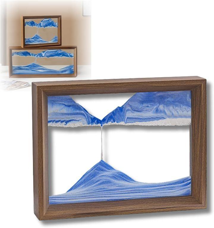 上下をひっくり返すたびに砂が流れ、砂漠や山、海など自然の風景を描き出します。