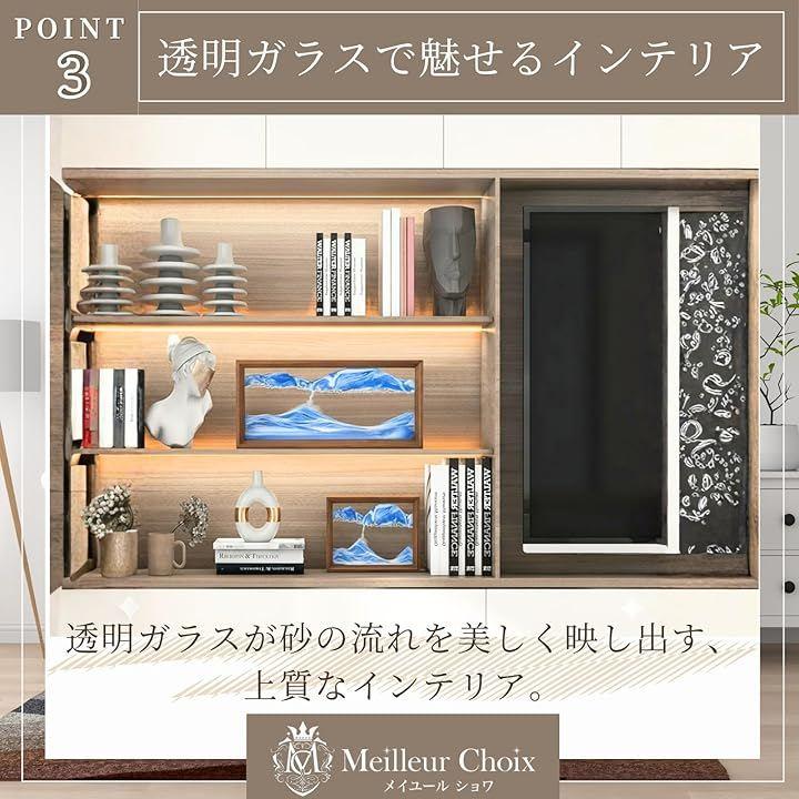 「透明ガラスで魅せるインテリア」 透明ガラスを採用し、繊細な砂の流れや層の変化を鮮明に楽しめます。