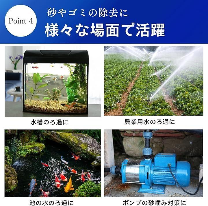 井戸ポンプや手押しポンプに取り付けることで、異物の混入によるポンプの故障や詰まりを防ぎ、機器の寿命を延ばすのに役立ちます。