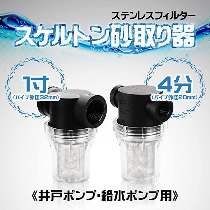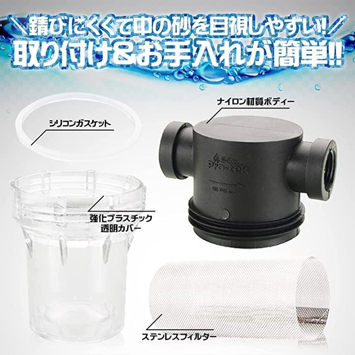 標準の#40フィルター付属で細かい砂まで取れ、砂かじりによるモーター焼損やポンプの磨耗、手押しポンプのパッキン摩耗を防止します。