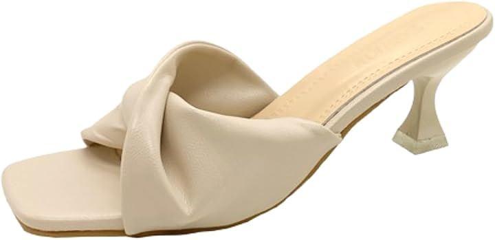 ツイストしたアッパーがリボンのようで女性らしいミュールサンダル。