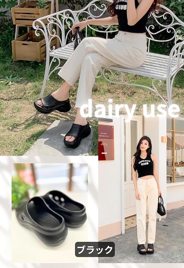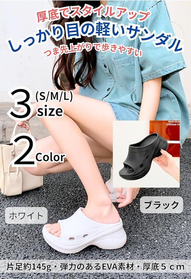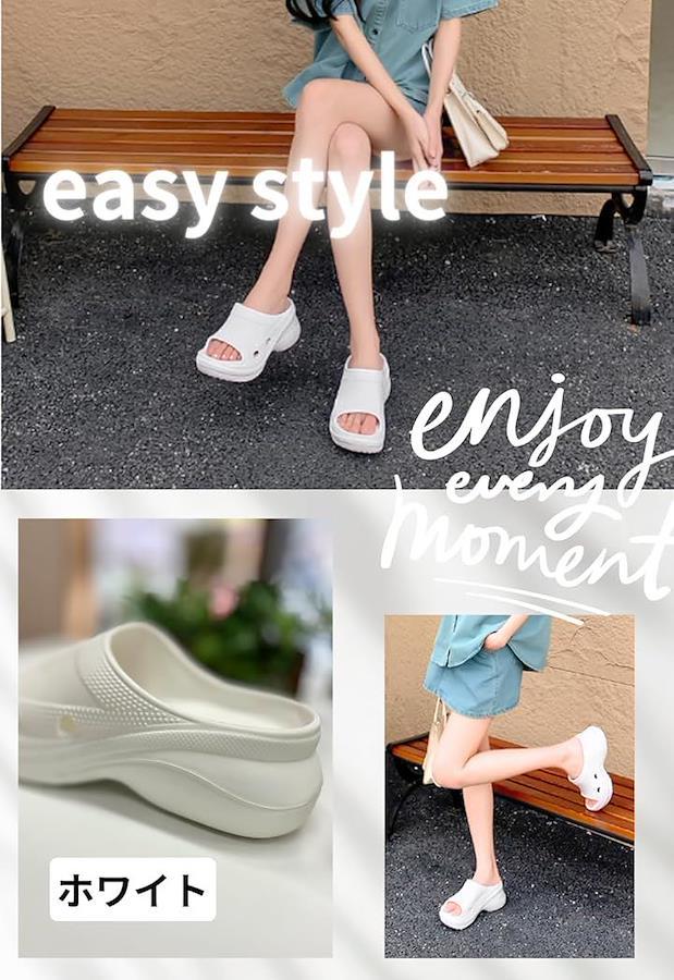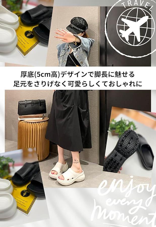 シンプルな厚底(5cm高)デザインの脚長効果を狙ったサンダルで、足元をさりげなく可愛らしくておしゃれに魅せてくれます。