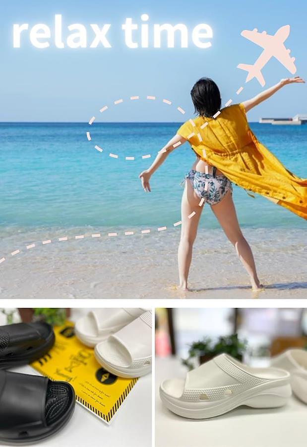 Sandals for women, thick soles, lightweight, clogs, beach, flip flops, open toe, simple, lightweight, stable, summer, style, fashion, slip-ons, women's sandals, pool, sea, footwear, heels
