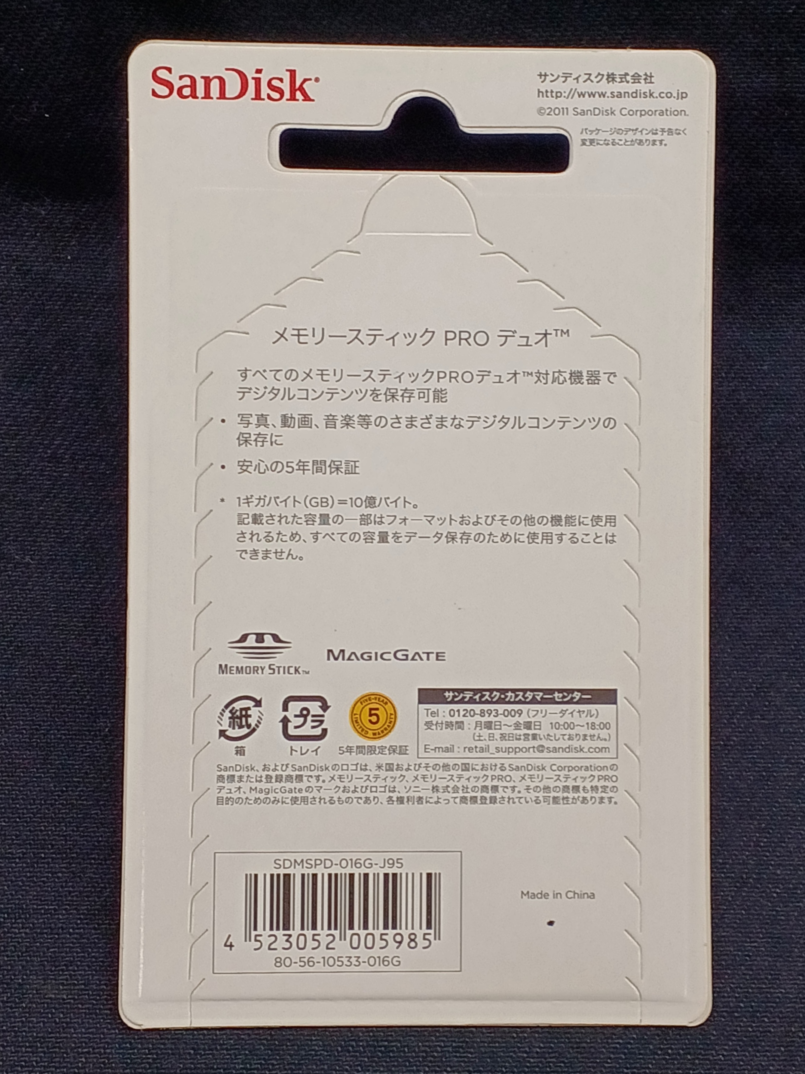 メモリースティックPROデュオ SDMSPD-016G-J95 SANDISK メモリーカード SANDISKSDMSPD-016G-J95メモリースティックPROデュオ
