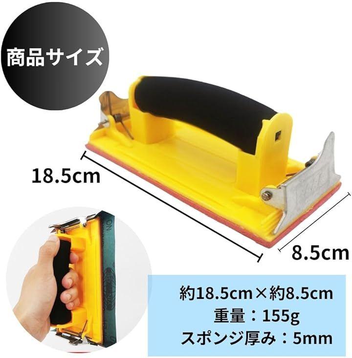 「商品詳細」サイズ:約18.5cmx約8.5cm 重量:155g スポンジ厚み:5mm 「ペーパー」粗さ240/400/600 寸法23cmx9cm