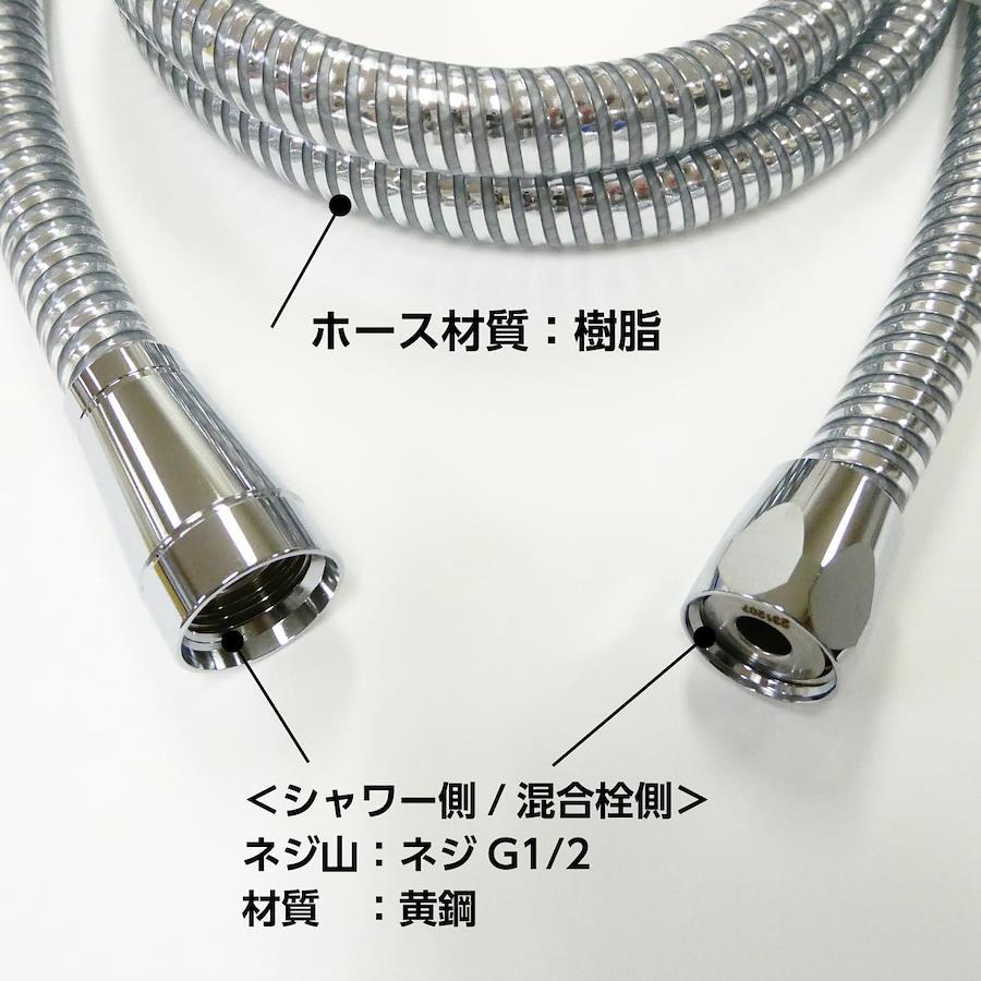 【少し長めの1.8mシャワーホース】通常に比べ、20cm長いのシャワーホースです。スライド式のシャワーフックをお使いの方や、長さが足りないと感じいている方に最適です。【特長】シャワーヘッド取付金具は回転式のためホースがねじれません。【高級感のあるシャワーホース】シルバーなのでメッキのシャワーヘッドと相性抜群です。ほとんどのメーカーで取付可能! ※取付可能メーカーは商品画像に掲載がありますのでご確認ください。【混合栓本体にそのまま取付けできるメーカー】SANEI,MYM,LIXIL(INAX)の一部製品,カクダイ,TBC,YUKO,ミズタニの一部製品,ノーリツ 【付属アダプターで取付け