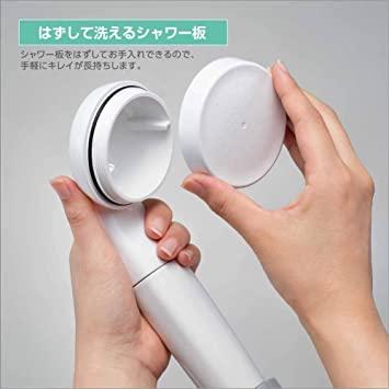 通常1-5営業日で発送:付属の発生装置で約6100万個/mlのウルトラファインバブルが発生。超微細な気泡が毛穴やシワの奥まで入り込み、肌や頭皮の汚れを優しく洗い流します。お肌や髪の健康を気づかい、洗浄力の強くないボディソープやシャンプーを使う方におすすめです。シャワーと泡の力で保温効果が持続。体を温める効果も持続します。水道水の残留塩素を除去する浄水機能付き。亜硫酸カルシウムが肌の保水力、保湿機能の悪化・肌荒れ・乾燥肌・枝毛・切れ毛・かゆみの原因となることもある水道水中の残留塩素を除去。皮膚や毛髪への刺激を減らす事ができます。浴びるときは浄水、お掃除には原水と切替えできるのでカートリッジを節約。カートリッジの交換時期の目安:1人約3ヶ月。(1日1人あたり8分間使用した場合) 交換用専用カートリッジ品番:PM7164-1(1本)、PM7164-3S(3本)