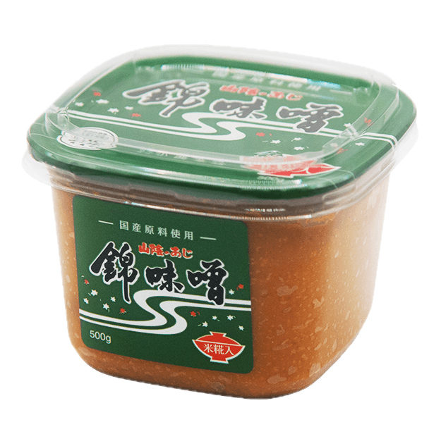 錦味噌の定番商品「米糀入みそ」は中期熟成で辛口よりです。お味噌汁やお料理など様々な場面で活躍します。特に松江の名産しじみとの相性は抜群で、錦味噌で作ったしじみ汁は忘れられない味と好評です。こちらの商品は他の容器に移し替える必要がない便利なカップ入り。原材料の大豆および米は、島根県産・鳥取県産を中心とした国産原料のみを使用しております。動物性原料を使用していないため、ヴィーガン、ベジタリアンの方も安心してお召し上がりいただけます。