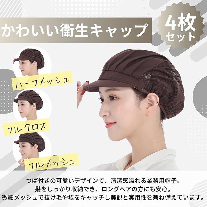 「かわいい衛生キャップ」つば付きの可愛いデザインで、清潔感溢れる業務用帽子。