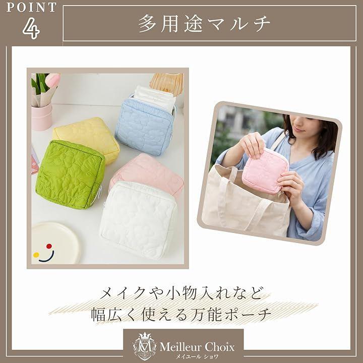 ナプキンやハンカチ、リップ、小物までまとめて収納でき、ファスナー付きで中身が見えずプライバシーも安心。