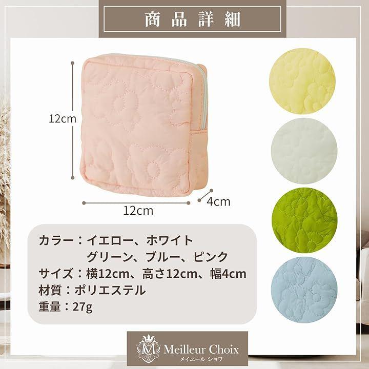 「商品詳細」 カラー:イエロー、ホワイト、グリーン、ブルー、ピンク サイズ:横12cm、高さ12cm、幅4cm 材質:ポリエステル 重量:27g